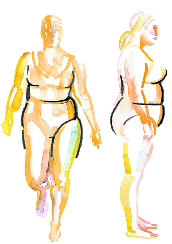 Our modified hourglass. Your bust and hips are proportional with a smaller yet not overly exaggerated waist.